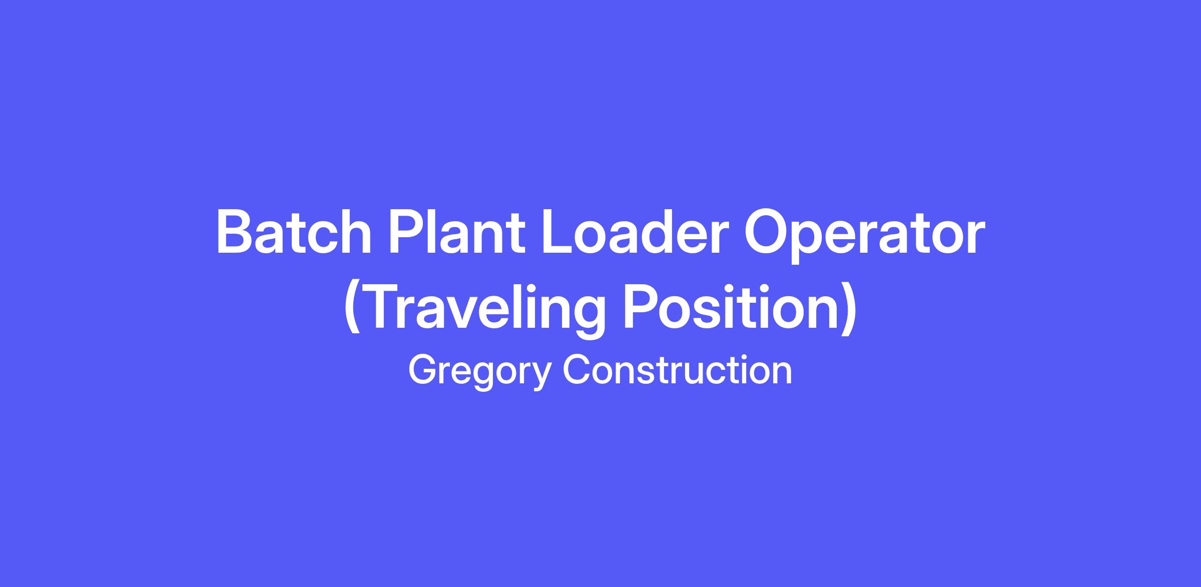 ob Title: Batch Plant Loader Operator (Traveling Position)