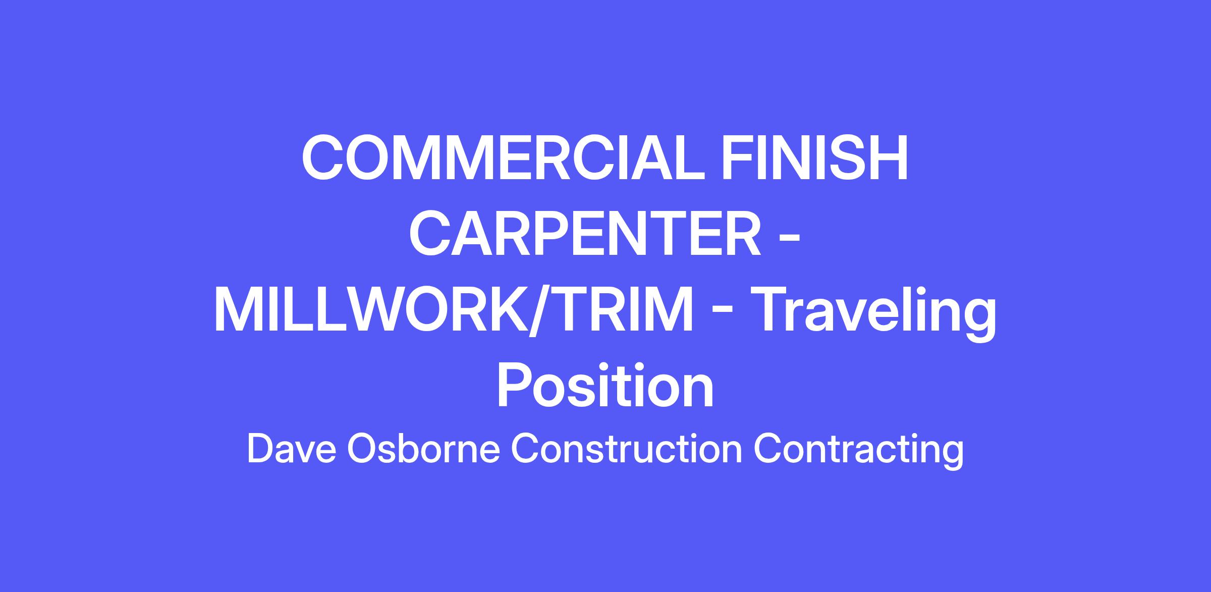 COMMERCIAL FINISH CARPENTER - TRAVEL NATIONWIDE