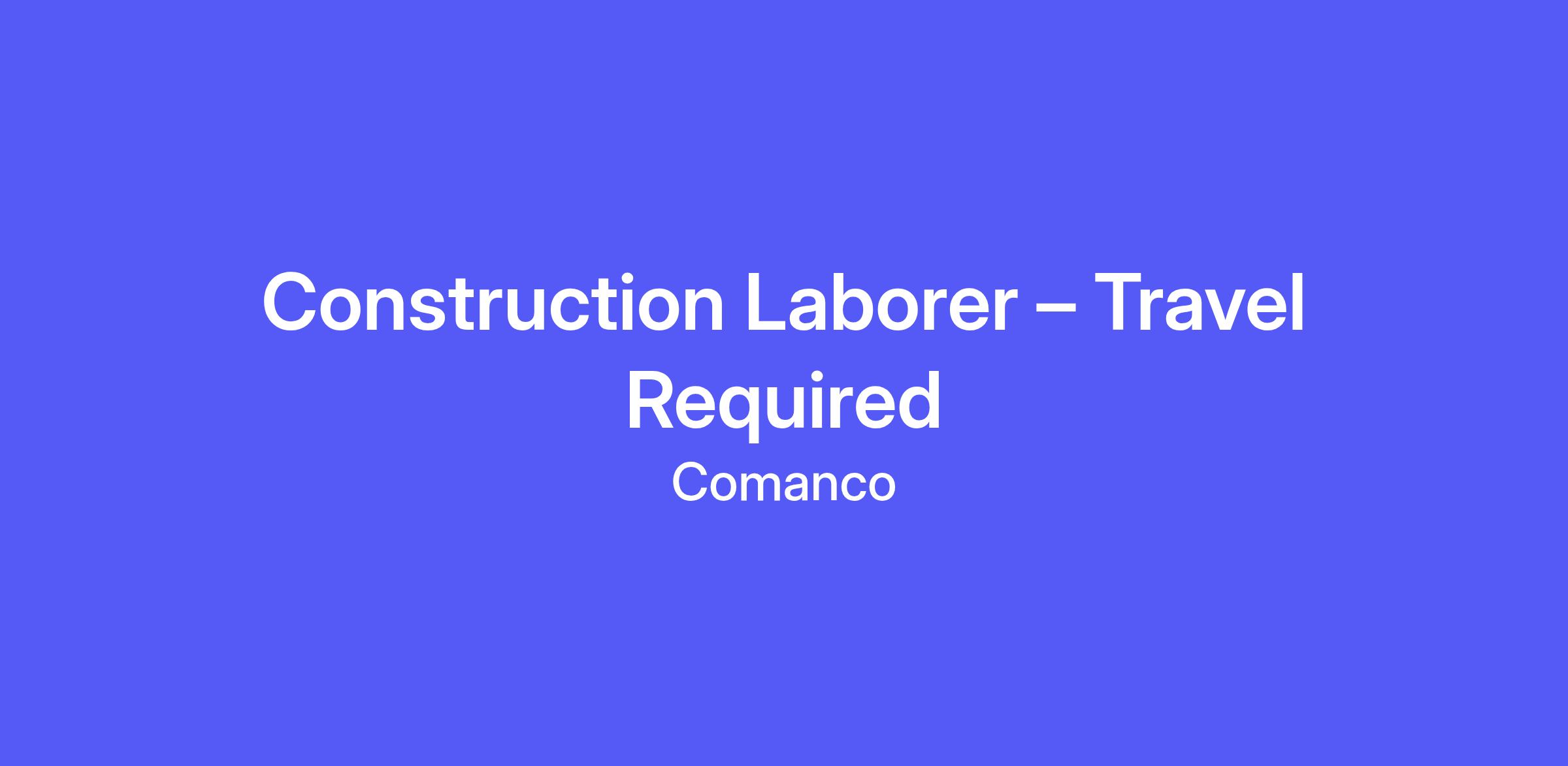 Join COMANCO for this full-time job opportunity to work as a Construction Laborers at construction sites in different States- we provide hotel/motel, and daily per diem while traveling away from home.