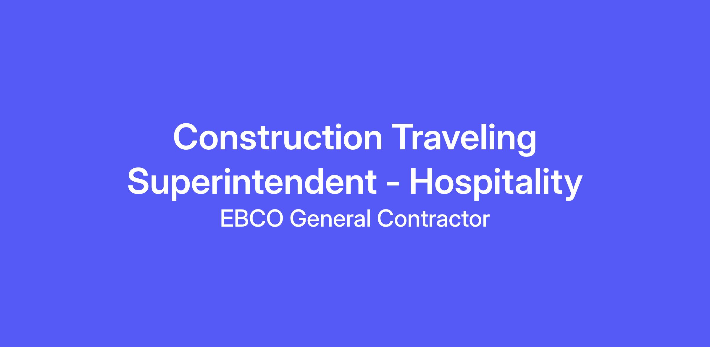 In this role, we are specifically seeking a Construction Superintendent with experience in ground up hotel or multifamily projects, who are excited to work with our repeat clients in Texas and potentially across the Southern US.Β