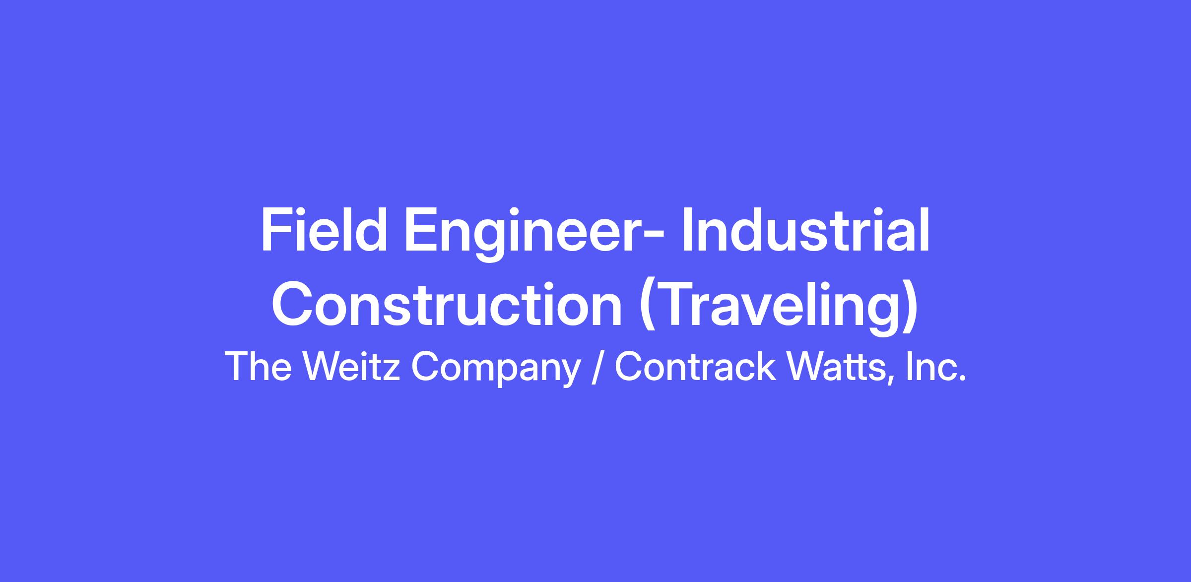 The Weitz Company is hiring a Field Engineer to join our traveling Industrial team! The Field Engineer will assist in the supervision of field work performed by Weitz and/or our subcontractors. This is a great opportunity for someone who is interested in becoming a Superintendent in the future.