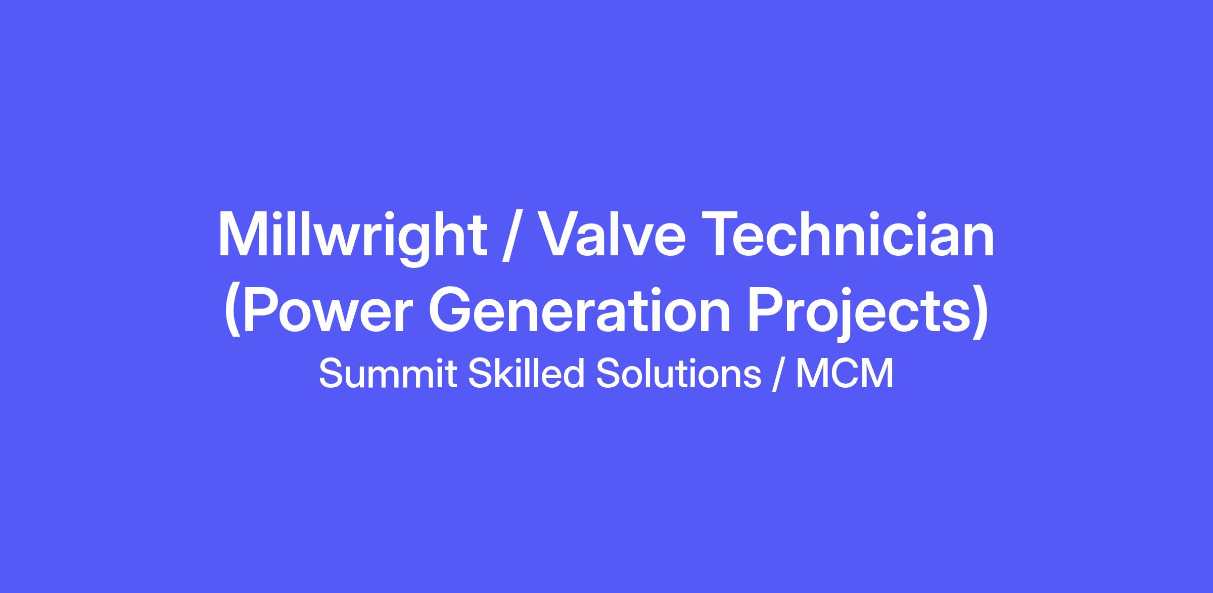 Job Title: Millwright / Valve Technician (Power Generation Projects)