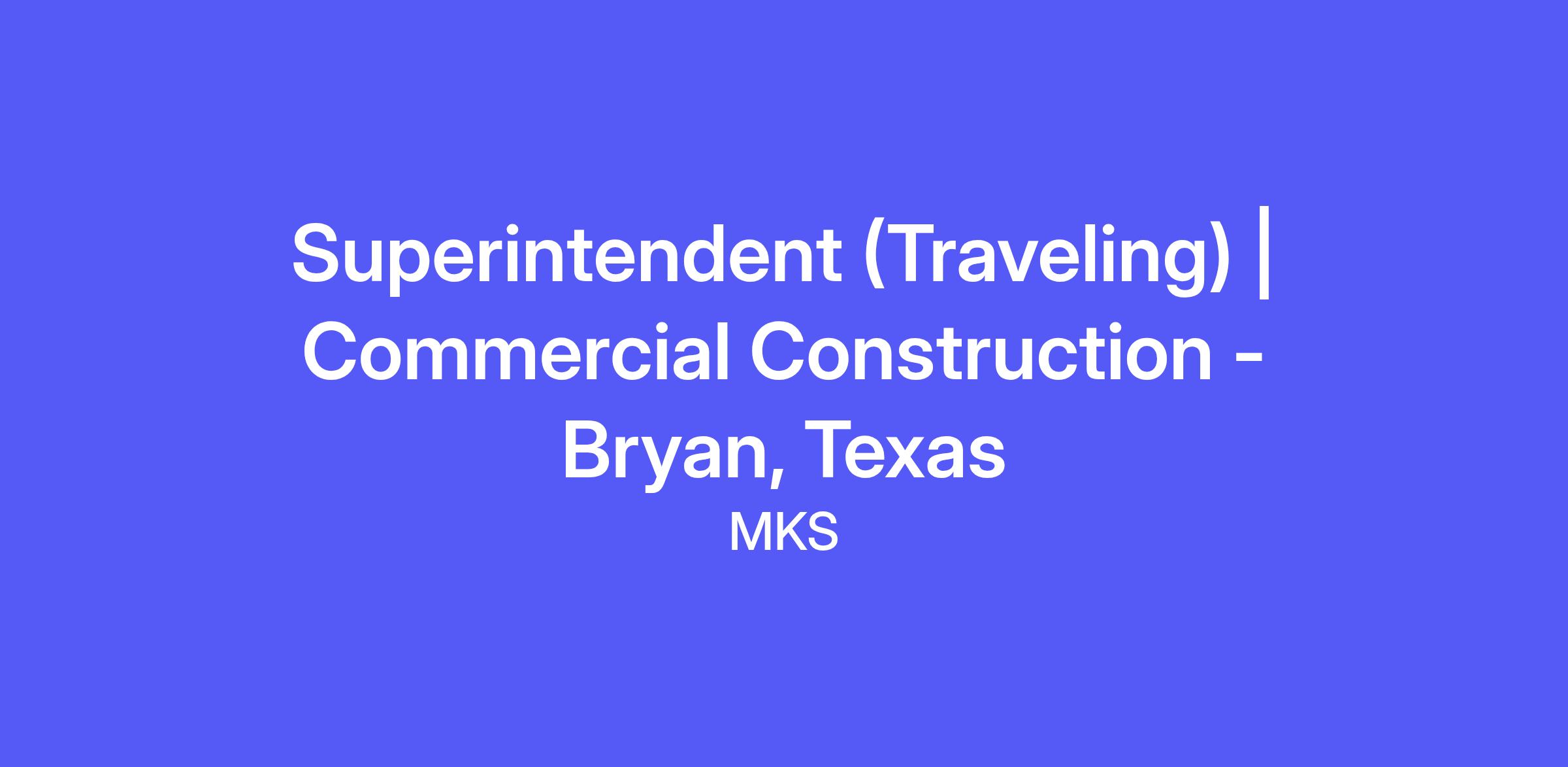 Superintendent (Traveling) | Commercial Construction - Bryan, Texas