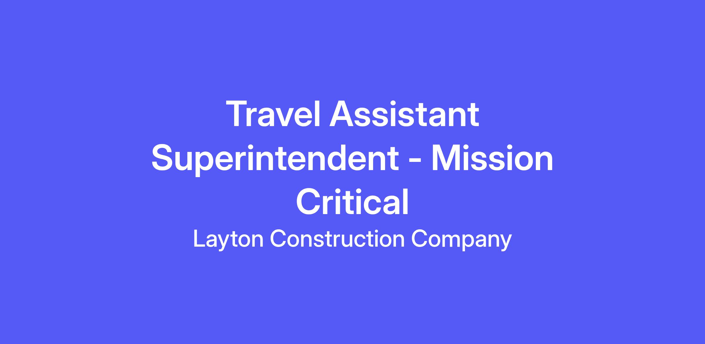 Benefits: Layton Construction offers the following benefits for this position, subject to applicable eligibility requirements: Medical Insurance, Dental Insurance, Vision Insurance, Health Savings Account, Healthcare Flexible Spending Account, Dependent Care Flexible Spending Account, 401(k) retirement plan with employer match, Life & AD&D Insurance, Long-term Disability Insurance, Short-term Disability Insurance, Critical Illness Insurance, Accident Insurance, Hospital Indemnity Insurance, Home & Auto Insurance, Family Support, Pre-tax Paid Parking/Public Transportation, Paid time off, Time Away Benefits, Paid Holidays, Group Legal, Employee Stock Purchase Plan, Identity Theft Protection, Group Legal, Pet Insurance, Employee Assistance Program.