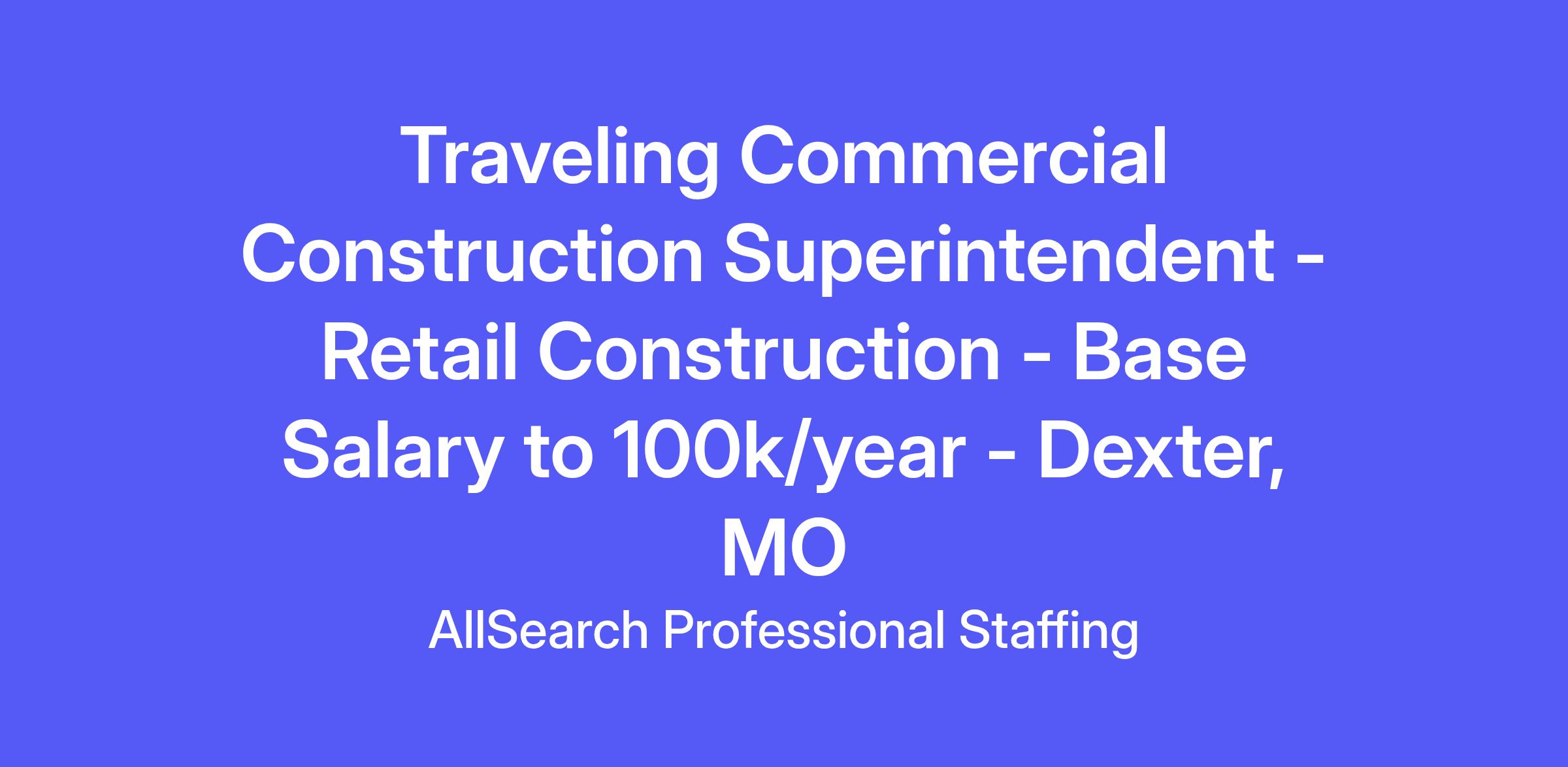Traveling Commercial Construction Superintendent - Retail Construction - Base Salary to 100k/year - Dexter, MO