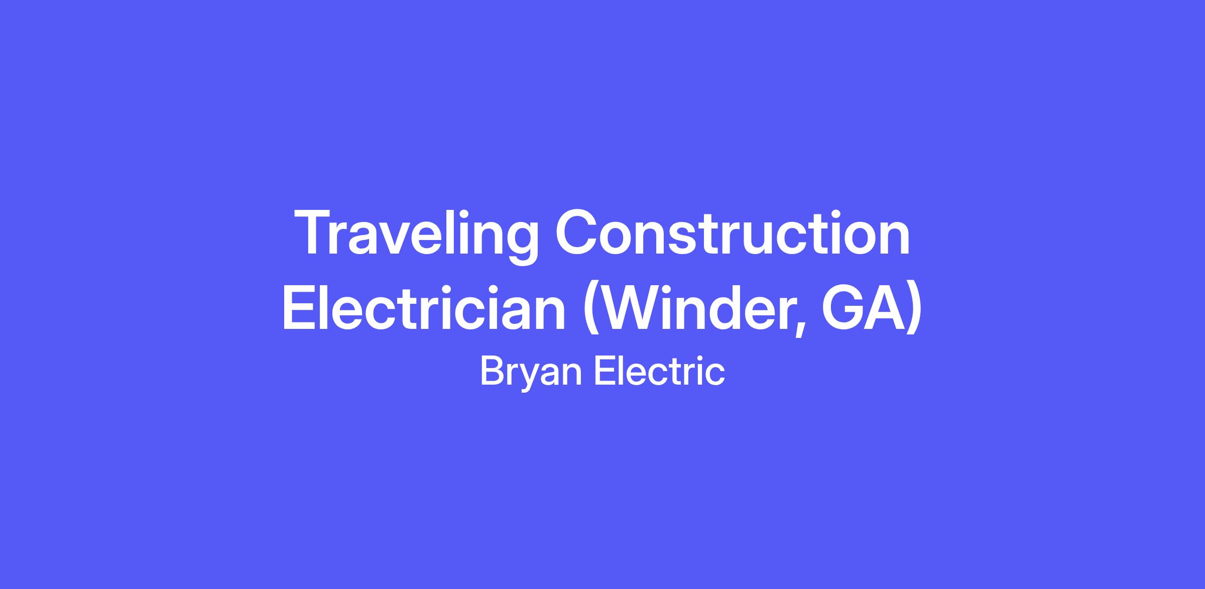 Bryan Electric is in search of Traveling Commercial Construction Electricians for our projects in the United States.