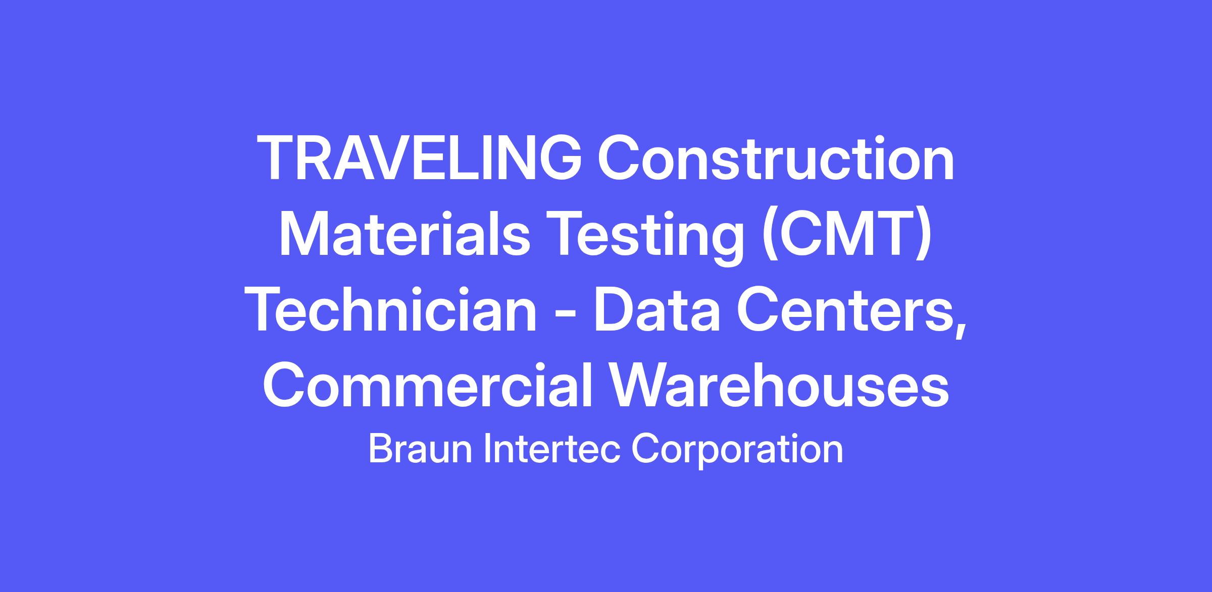 Braun Intertec is seeking experienced Construction Materials Technicians to join our team. This is a traveling position working on Data Centers, Commercial Warehouses and other remote projects.