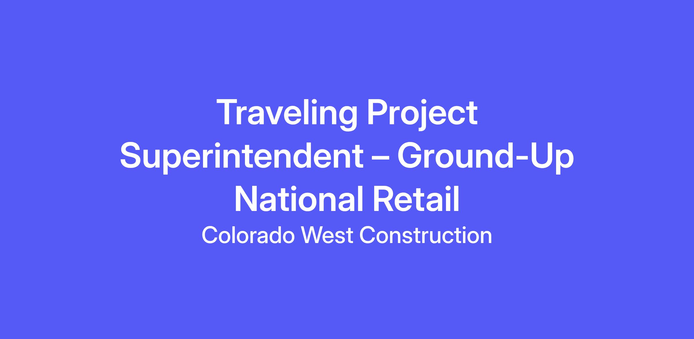 We are seeking a highly experienced Project Superintendent to lead large-format, ground-up national retail projects throughout the Western region (including but not limited to UT, NV, CA, AZ).