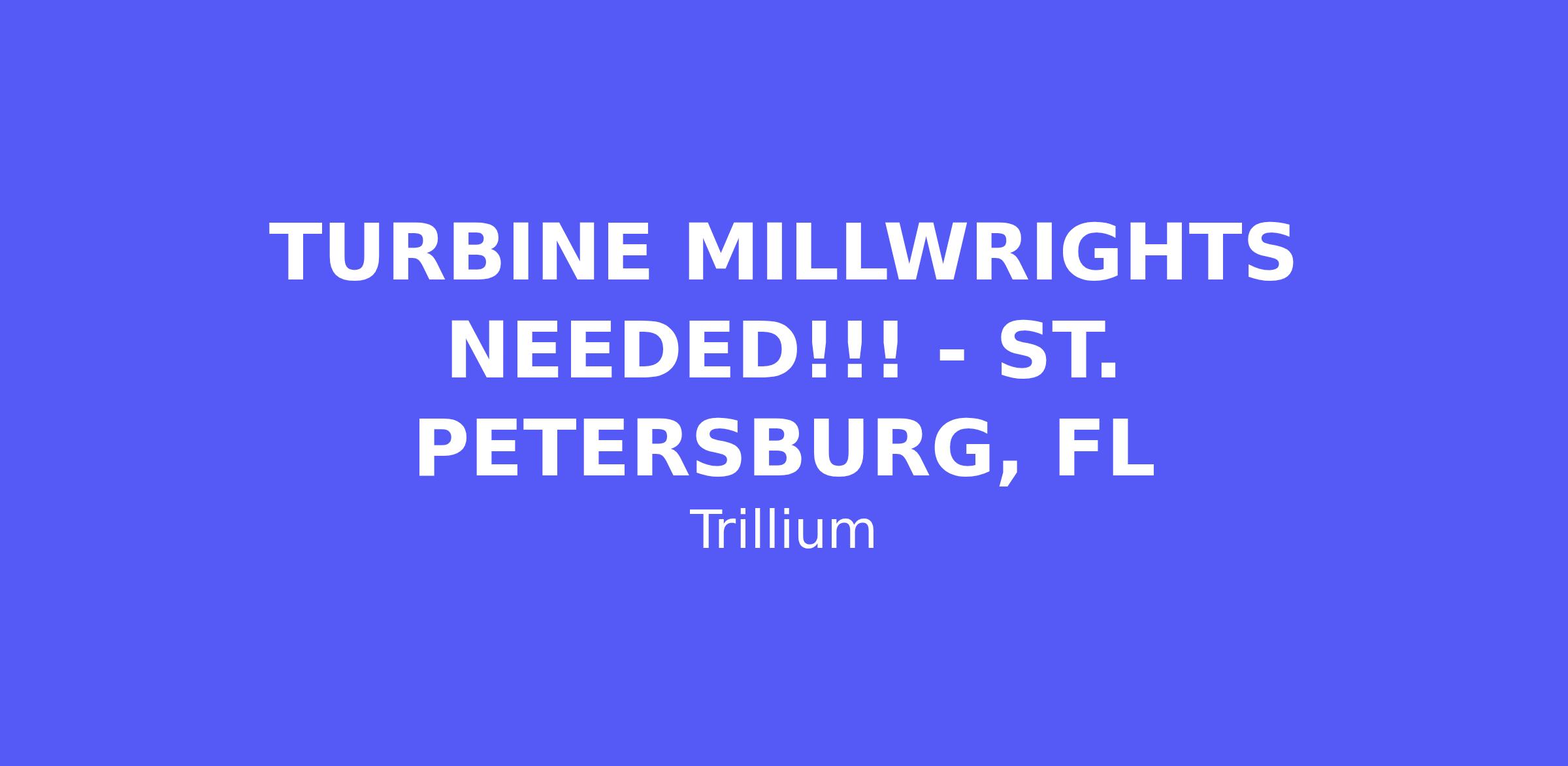 Trillium construction is hiring Turbine Millwrights (day and night shift) for a 6-8 day shutdown in St. Petersburg, FL!